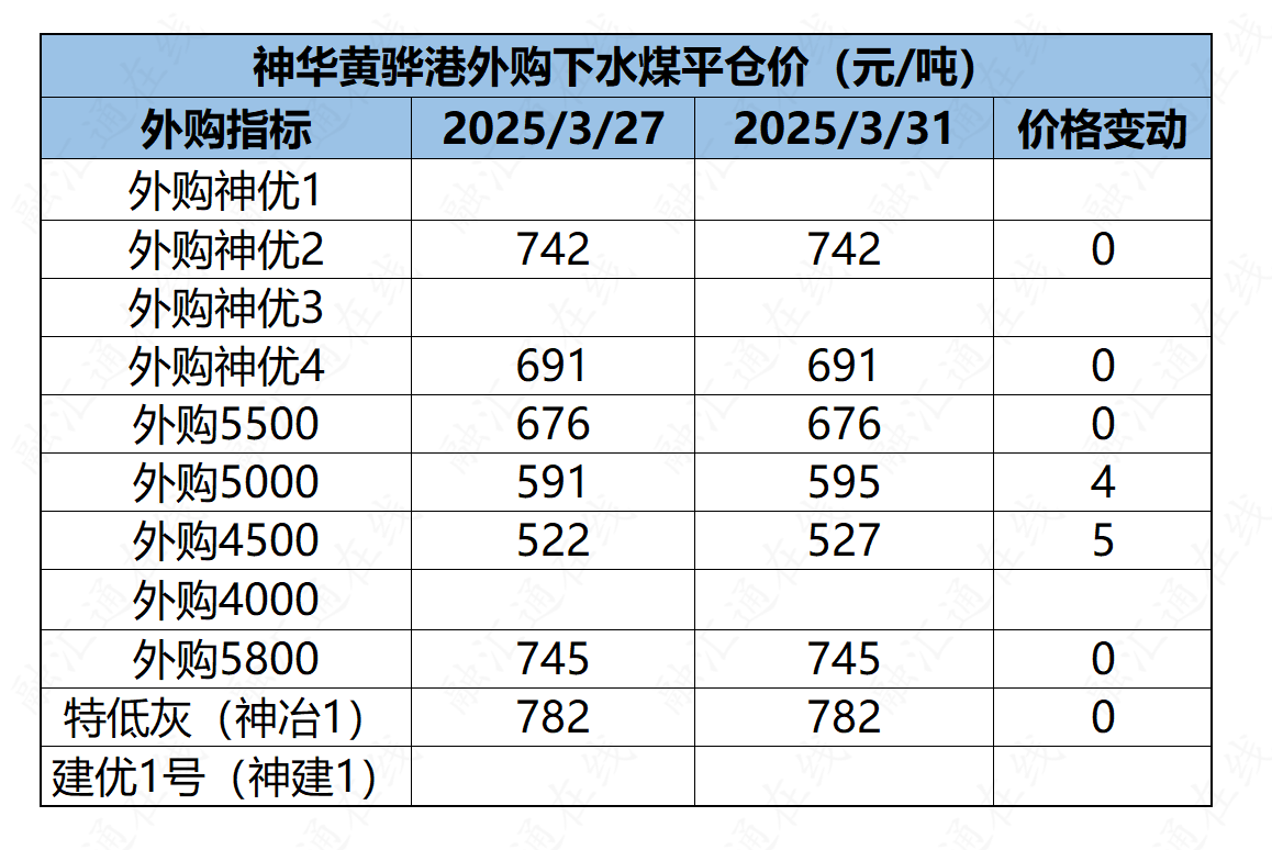 3月31日,神华黄骅港外购下水煤平仓价上涨4-5元/吨