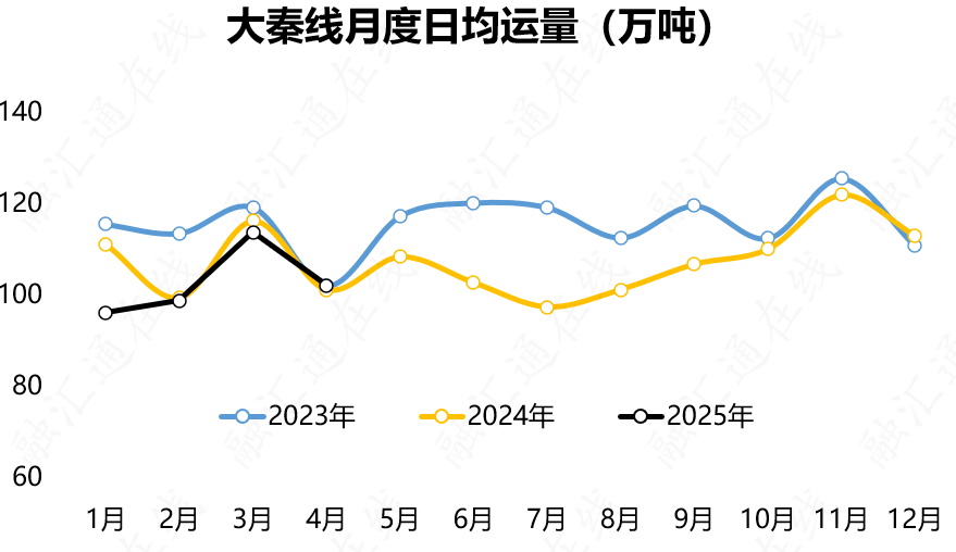 3月大秦线的日均运量为113.77万吨,而4月的日均运量为102.07万吨,运量下滑主要受到春季检修的影响。此次大秦铁路的集中维修养护从4月1日开始,至4月27日结束,比原计划提前了三天完成。在此期间,每日9时至12时,全线列车停止运行,对线路进行立体式检修和维护。