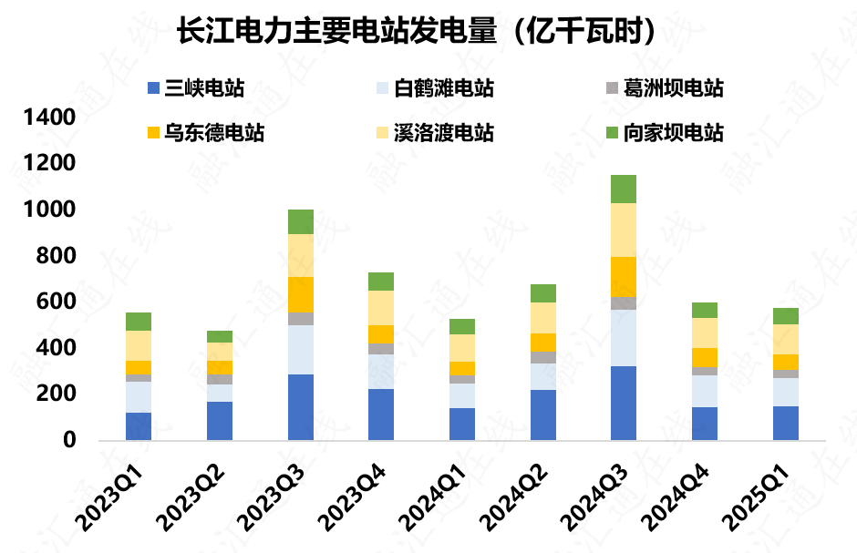 2025年第一季度,公司境内所属六座梯级电站总发电量约576.79亿千瓦时,较上年同期增加9.35%。分电站来看,乌东德电站完成发电量65.46亿千瓦时,同比增长9.90%;白鹤滩电站完成发电量125.74亿千瓦时,同比增长17.10%;溪洛渡电站完成发电量132.02亿千瓦时,同比增长8.47%;向家坝电站完成发电量70.40亿千瓦时,同比增长9.39%;三峡电站完成发电量147.93亿千瓦时,同比增长5.55%,葛洲坝电站完成发电量35.24亿千瓦时,同比增长2.74%。