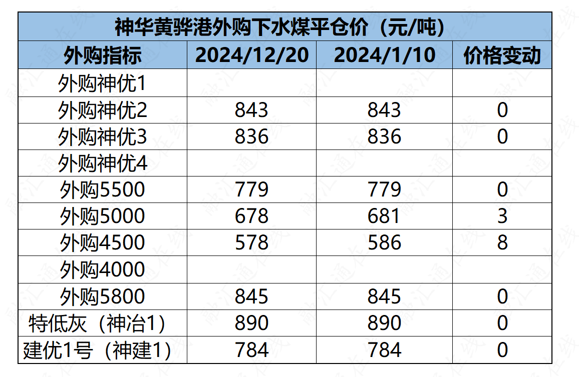 1月10日,神华黄骅港下水煤中低卡外购价上涨3-8元/吨